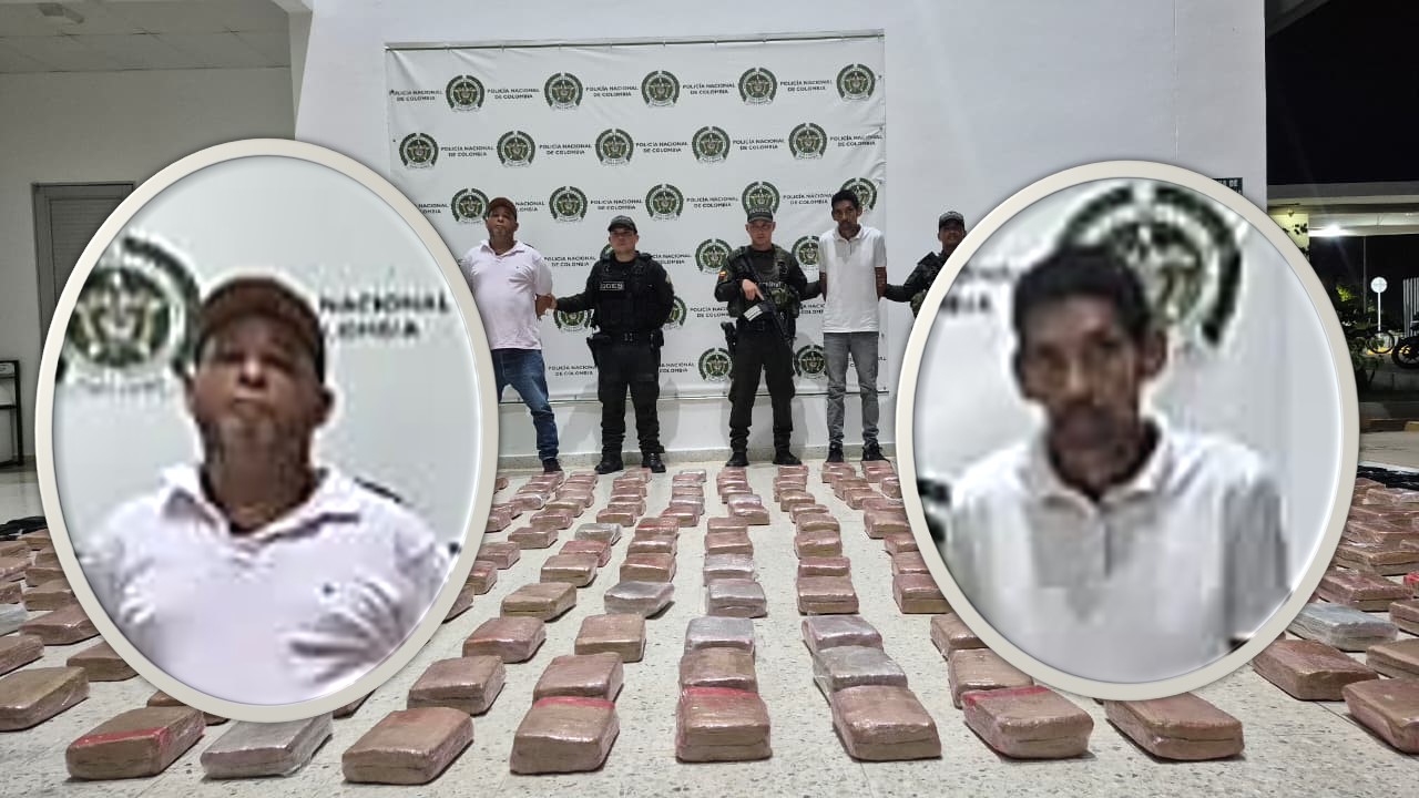 Los ocupantes del vehículo fueron identificados como Jonathan Jaar Olivares Iguarán, de 43 años, y Yiovani Atencia Patiño, de 55, y puestos a disposición de la Fiscalía por el delito tráfico, fabricación o porte de estupefacientes.